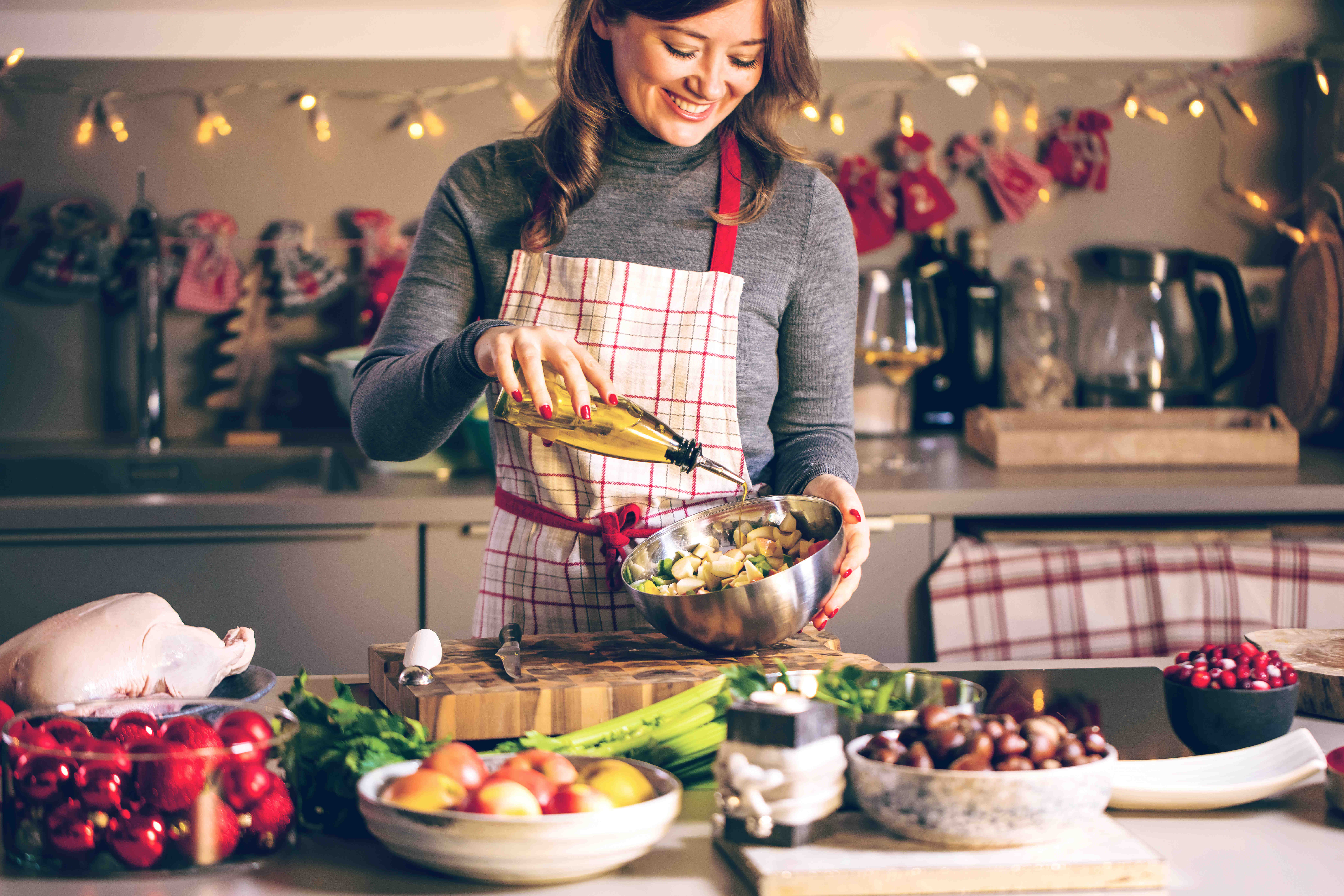 Auch beim klassischen Weihnachtsbraten lässt sich leicht umdenken: Eine Pute oder ein Hähnchen sind deutlich fettärmer als Gans oder Ente. Sie schmecken, fein gewürzt und mit frischen Kräutern im Ofen gegart, genauso festlich.